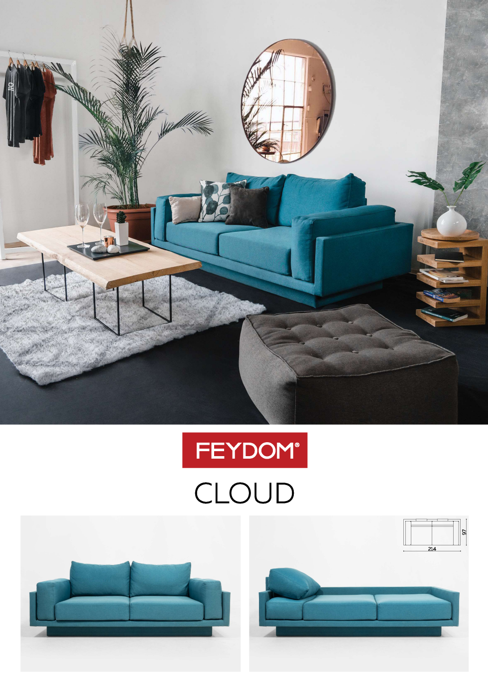Confortevole divano a tre posti intelligente duraturo facile da amare .Bastano pochi secondi per trasformarlo in letto singolo .tutti i tessuti sono sfoderabili e lavabili. Disegnato da Filimena Radonjanin per Feydom, Cloud e' un divano a 3 posti facilmente trasformabile in un letto singolo. Realizzato con struttura in legno massello di faggio, questo divano e' imbottito con poliuretano espanso e rivestito con tessuto Mollia. Cloud e' facilmente sfoderabile ed il tessuto, composto da 80% poliestere e 20% cotone, e' lavabile in acqua fredda o presso centri specializzati
